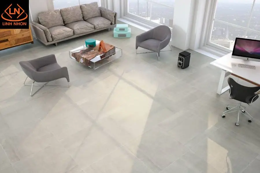 Phòng Khách Thiết Kế Tối Giản Với Gạch Men Mờ